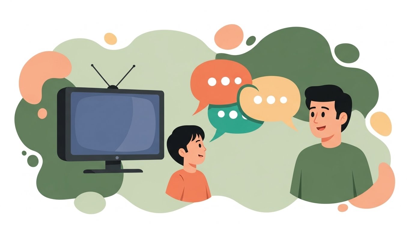 How media use can crowd out conversation—and what to do instead. Co-viewing, pauses, and screen-free bubbles.